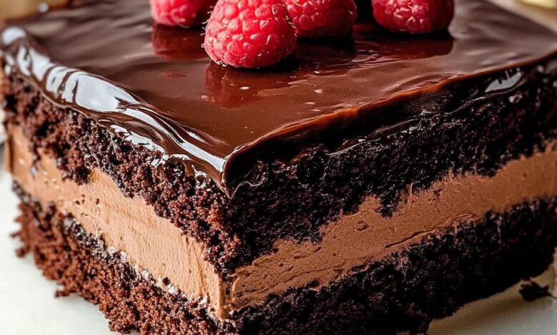 9. Once cooled, layer the cakes with a raspberry or chocolate frosting of your choice. Decorate with additional raspberries on top for a beautiful finish.