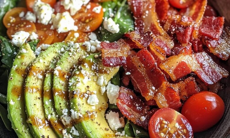 #KetoAvocadoBaconSalad #LowCarbMeals #HealthyEating #SpinachLovers #KetoFriendlyRecipes